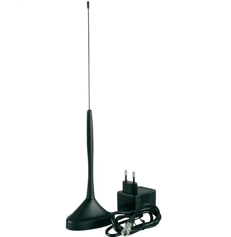 The SCHWAIGER® DVB-T rod antenna for indoor allows analogue and digital television and radio reception. It has a stable base for stable placement. The antenna receives TV programs VHF and UHF and radio programs in the FM and DAB + range. What makes this antenna is the multi-position function, which allows the optimal alignment of the antenna. The power is supplied via the external power supply or through a receiver.